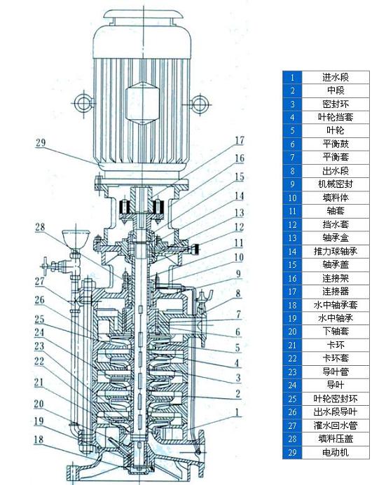 DL系列立式多級離心泵結(jié)構(gòu)圖: